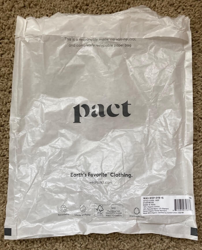 By the way, the patterned 3-pair set was in a paper package like this. What a catchphrase: “Earth’s Favorite Clothing.”