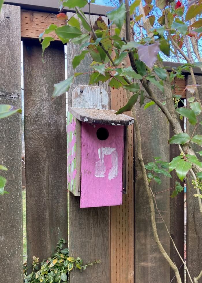 - 鳥の巣箱をフェンスの支柱に取り付ける