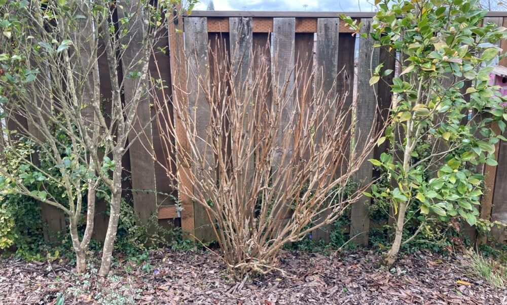 After pruning the hydrangea, it looks neat. This year, only the light pruning is done by removing dead branches and cutting to the point where buds begin to emerge. The pruned thin branches were cut to about 1 inch (3 cm) and returned to the base of the hydrangea.