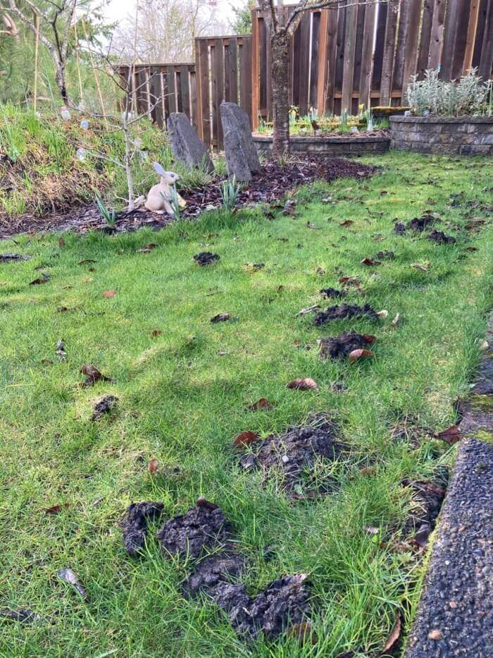 Over the last several years, moles have been ravaging our garden. When I bought a new house 14 years ago, the backyard had lawn and a few garden trees planted in a little garden soil on top of clay mixed with gravel that had been bulldozed. I think the soil was probably inhospitable to earthworms and moles. I dug up the soil, mixed with compost and leaf mold to plant cherry blossoms, camellias, and various fruit seedlings. The lawn was also top-dressed with screened compost almost every year. As a result, the number of earthworms in the soil increased steadily, and after 10 years, moles appeared out of nowhere. That’s right, Mr. Mole seems to love earthworms. It is great that the soil has improved, but the damage caused by moles is a real problem. You can’t mow the uneven lawn unless you trample it down with your feet first. Also, the veggies don’t grow well if they burrow nearby.