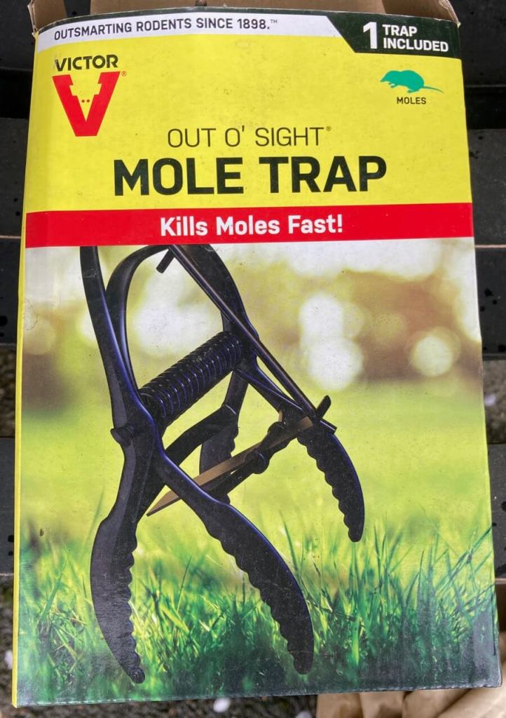 The first is a common scissor-jaw mole trap. When the mole touches the metal piece in the middle, the scissors close and pinch the mole. A little troublesome to set up. You have to dig a hole and place it parallel to the mole path. Then, cover with soil or bucket to block light. The soil in the middle of the trap should be heaped up so that it just touches the piece of metal. The force of the spring is strong, so it is a little scary to install.
