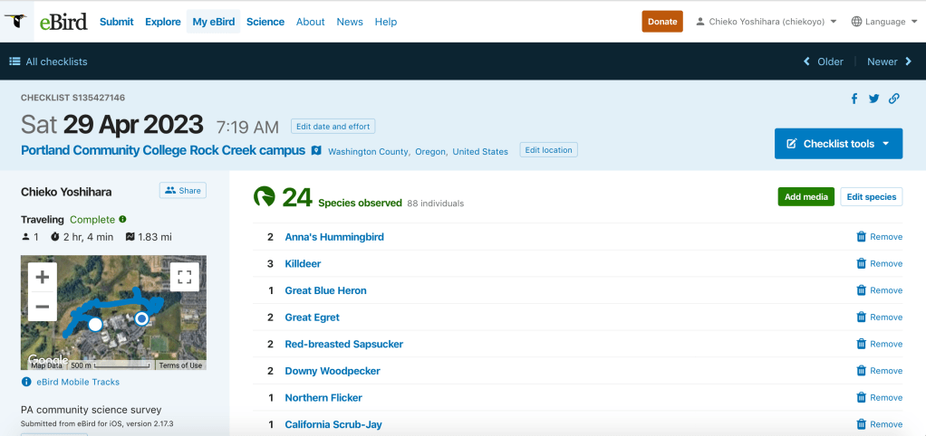 It’s been more than 20 years since I started bird watching after coming to the US. Ever since the babies were born, I had not been able to go bird watching much, but last year, I started bird watching volunteer as a community scientist for Portland Audubon.