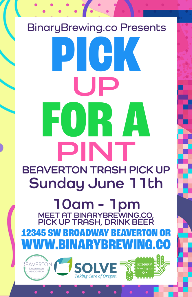 Invited by a friend, I went to a trash pick up event called “Pick Up for a Pint“. This is a collaboration event between a brewery called Binary Brewing and an NGO called SOLVE that cleans up Oregon by picking up trash. Well, it is an event where you can drink a free beer after picking up trash. I’ve been interested in SOLVE events for a long time, but this time I went with a friend because the place was close and I was not alone, so I jumped at it immediately. Never for beer😅