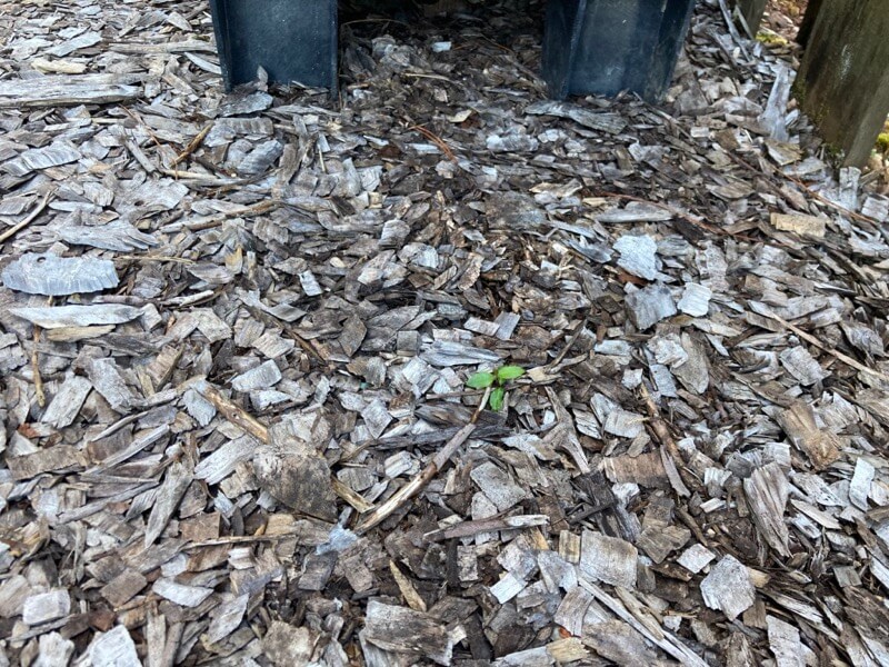 というわけで、2年前に見つけた代替品がウッドチップ。ある時、当時の仕事場の近所にウッドチップの大きな山がいくつかあって、そのあたりの家庭の前庭に敷かれていました。「ほう!これはいい。」と思っていたら、ある日前庭で作業しているおうちの方がいらしたので、どこで調達したのか聞いてみました。「ChipDropよ。タダなんだけど、寄付したら早く持ってきてもらえるわよ。」