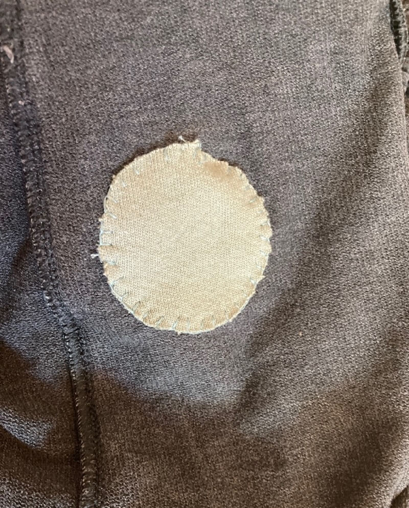 次に、顔のないパッチをズボンの裏にあて、かがり縫い。