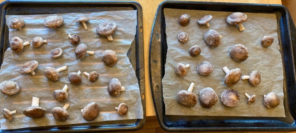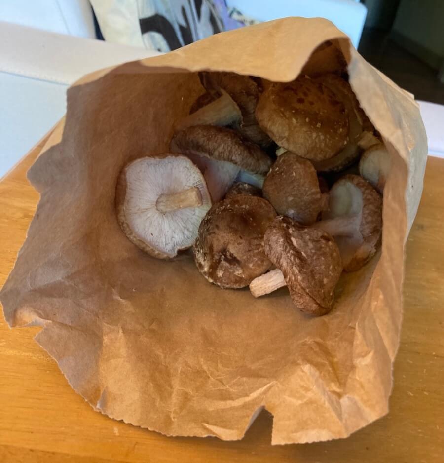 干し椎茸を店で買うとプラスチックの袋に入って売られているので、ファーマーズマーケットで生しいたけを買って自分で作ることにしました。この理由って変?プラスチックを減らす以外にも、ファーマーズマーケットで買うといいことは、ローカルでフレッシュで美味しいこと。しかも1ポンド10ドルで、スーパーで買うよりお得でした。