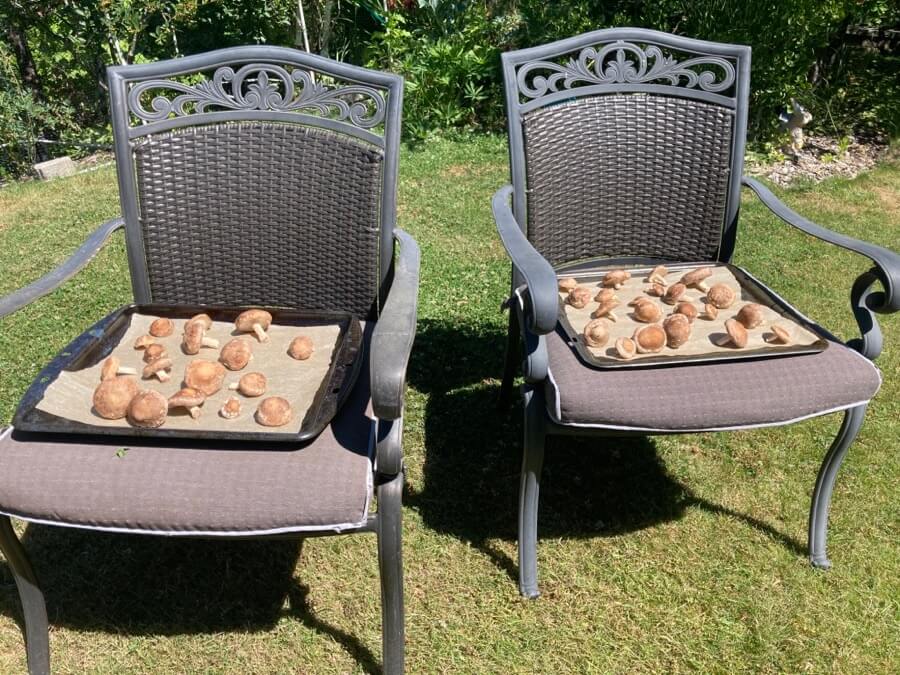 Sun-drying shiitake mushrooms〜