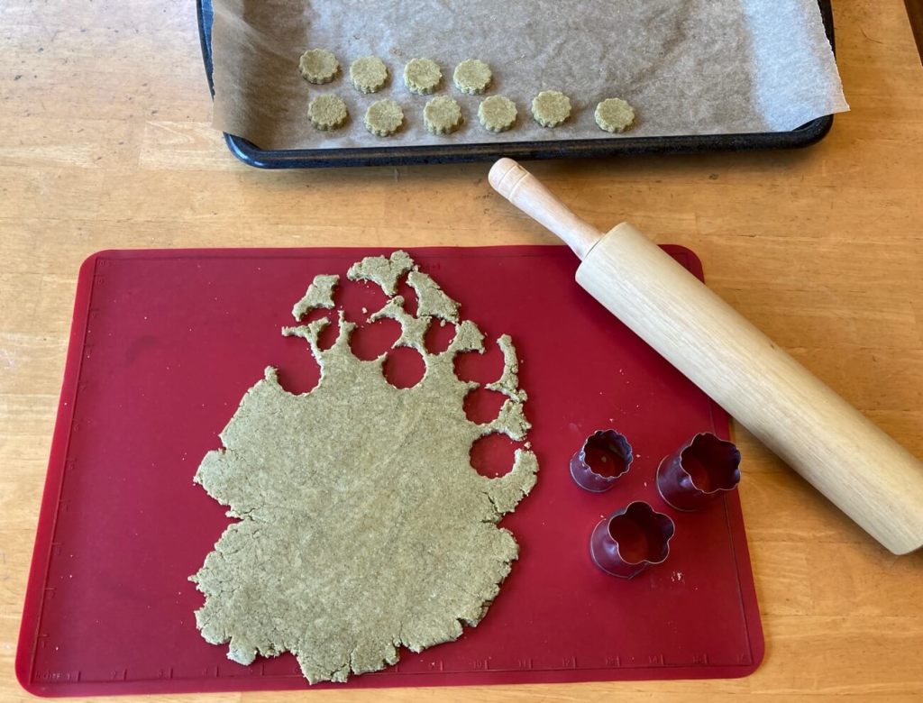 - 生地をめん棒で3ー4ミリ程度にのばして型で抜く。