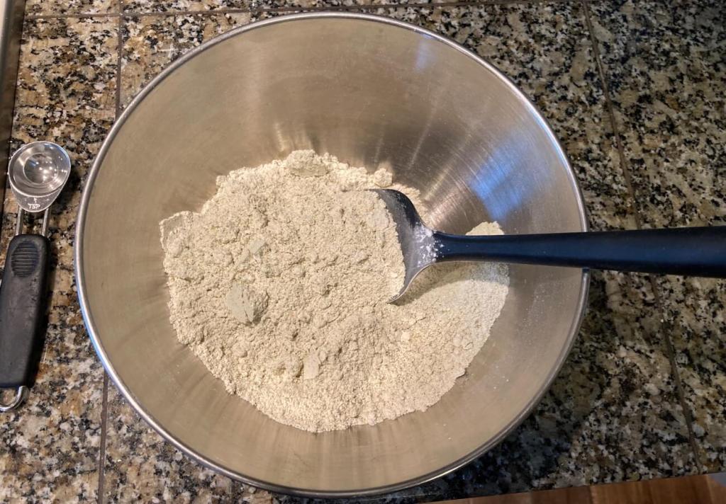 - 粉類を全てボウルに入れてヘラで混ぜる。