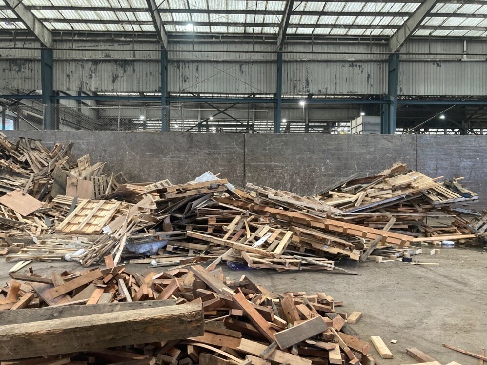 運び込まれたごみから、リサイクルまたはリユーズできる物質を回収したのち、トレイラーにぎゅうぎゅうに押し込まれます。