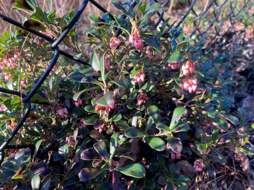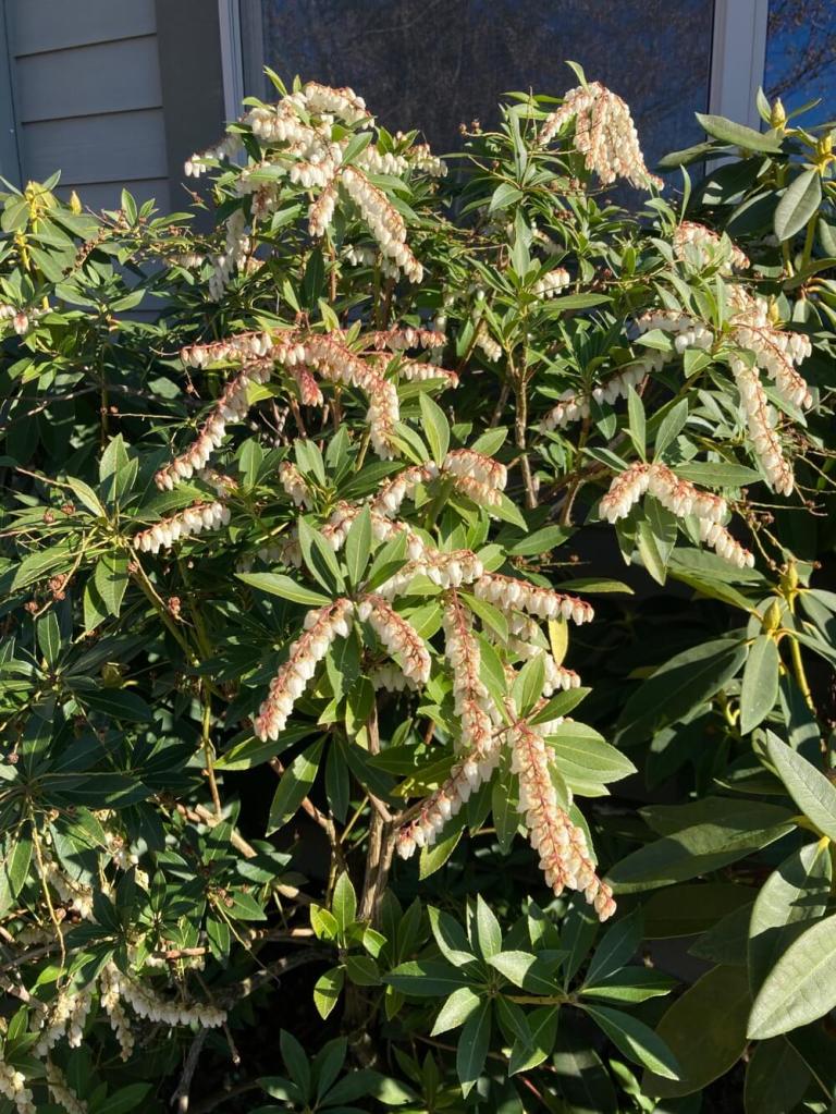 桜(咲き始め)、水仙、スミレ、馬酔木、ヒヤシンス、オレゴングレープ、白い椿、クマコケモモ