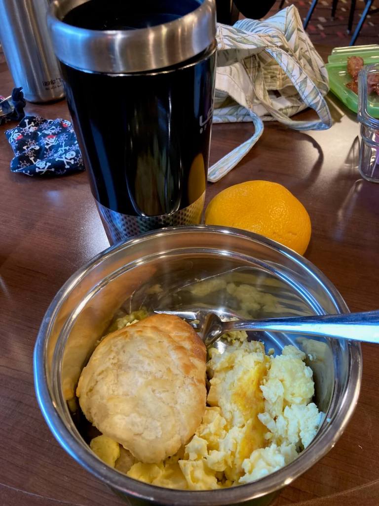 I washed the utensils and containers at hotel. The breakfast at a hotel was a bummer. Everything was disposable, spoon, fork, plate and cup…Second day, I brought my own.