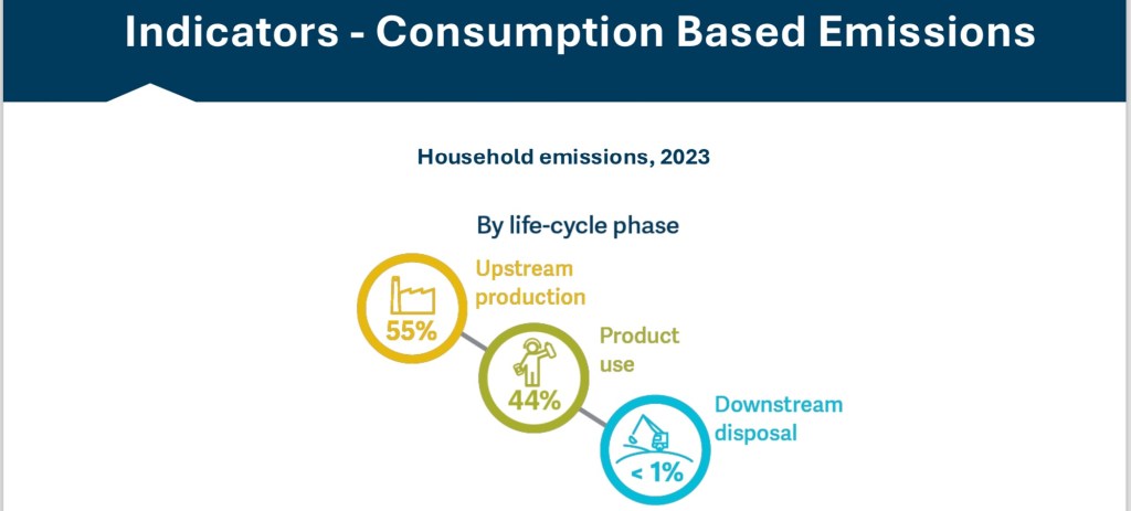 Stuff is made out of some ingredients and the ingredients don’t magically appear from nowhere. Everything is made out of resources on the earth. Those resources have to be mined using energy and the process emits CO2 and creates pollution. Products are also made with energy, which emits CO2 and creates pollution. The image above shows that 55% of CO2 emission comes from producing the stuff we buy. If we skip buying new stuff, this 55% of CO2 is reduced❗️The opposite is true. I can say that making new stuff is accelerating climate change and pollution.